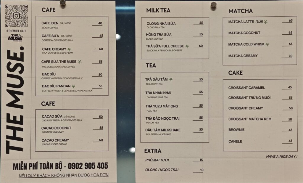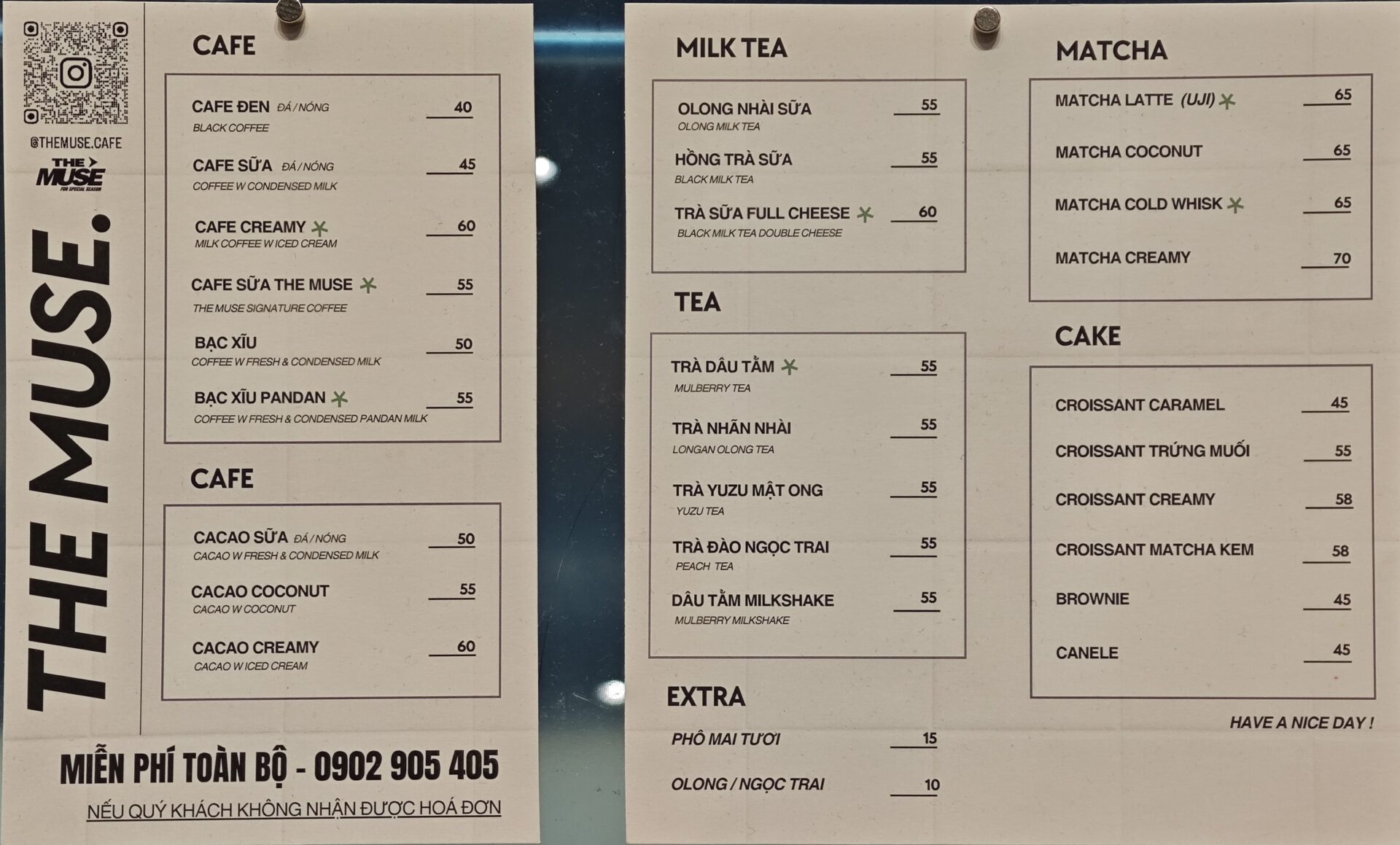 「The Muse.」のメニューはこちら。意外にも価格はお手頃です。