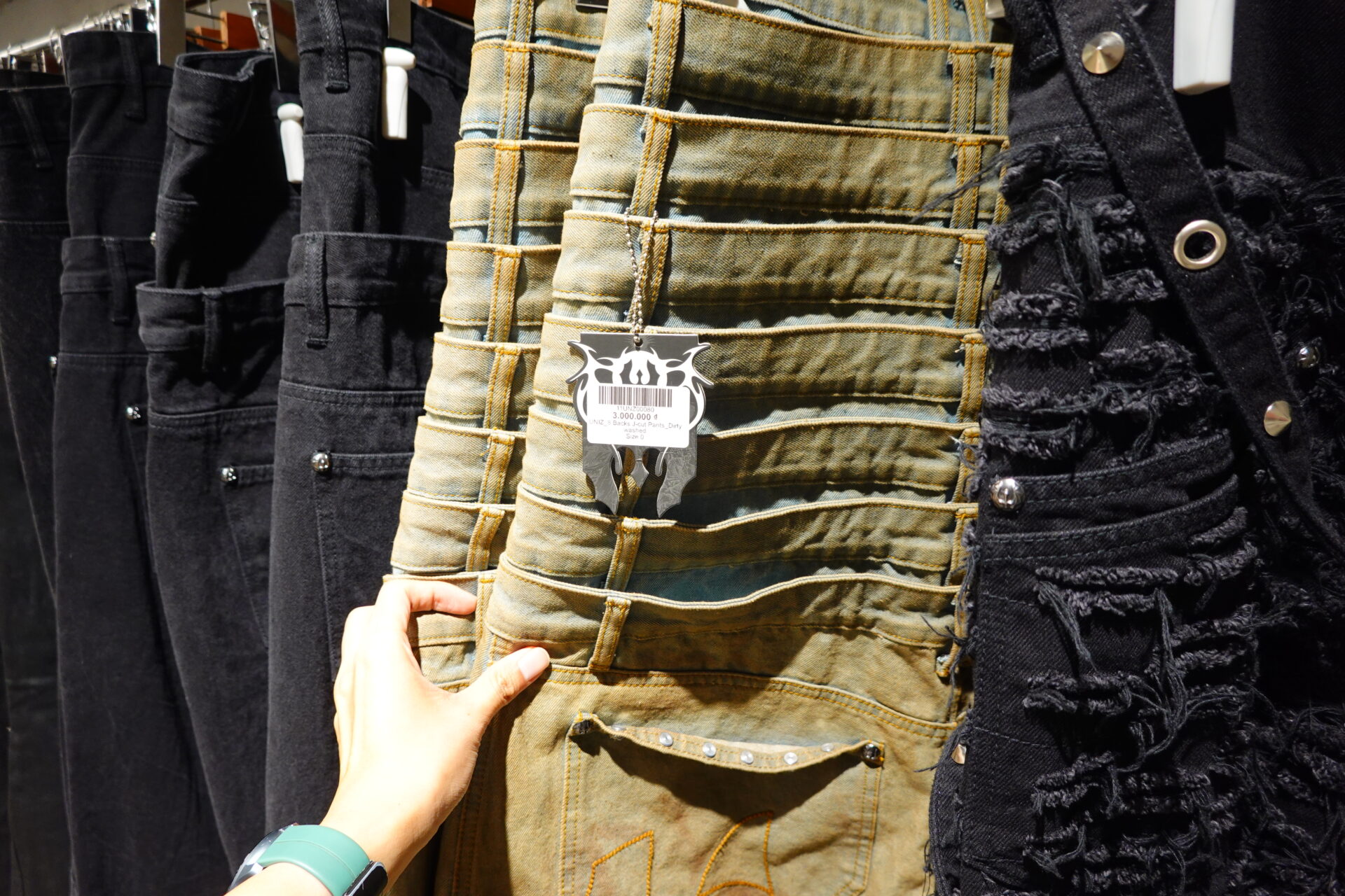 なお、1階で一番異彩を放っていたのがこちらのデニム。読み込み中のページをスクロールして画像の表示がバグったみたいなことになってる!?これ、実際に履いたらどうなるんだ…?ちなみに価格は300万ドンと、意外にもお手頃。