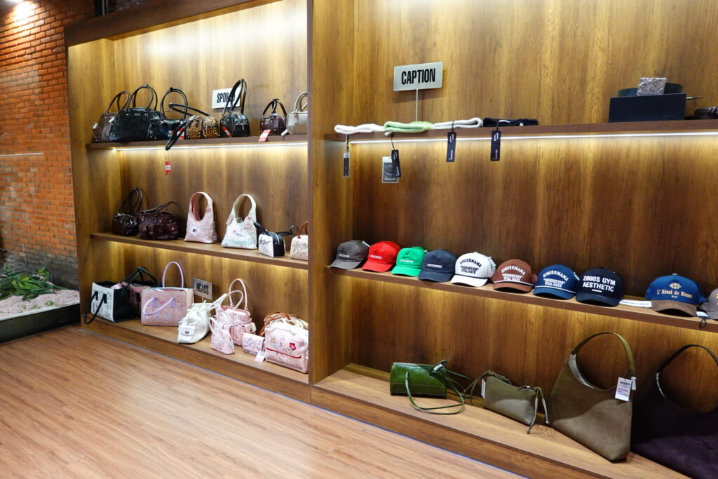 バッグもありますが、フェミニンなものが中心で、バックパックなどは無さげ。あとは靴なんかも置いてほしいのですが、ローカルブランドでフットウェアを手掛けているところって限られるんだよな。難易度が高いのか、コストがかかるのか。