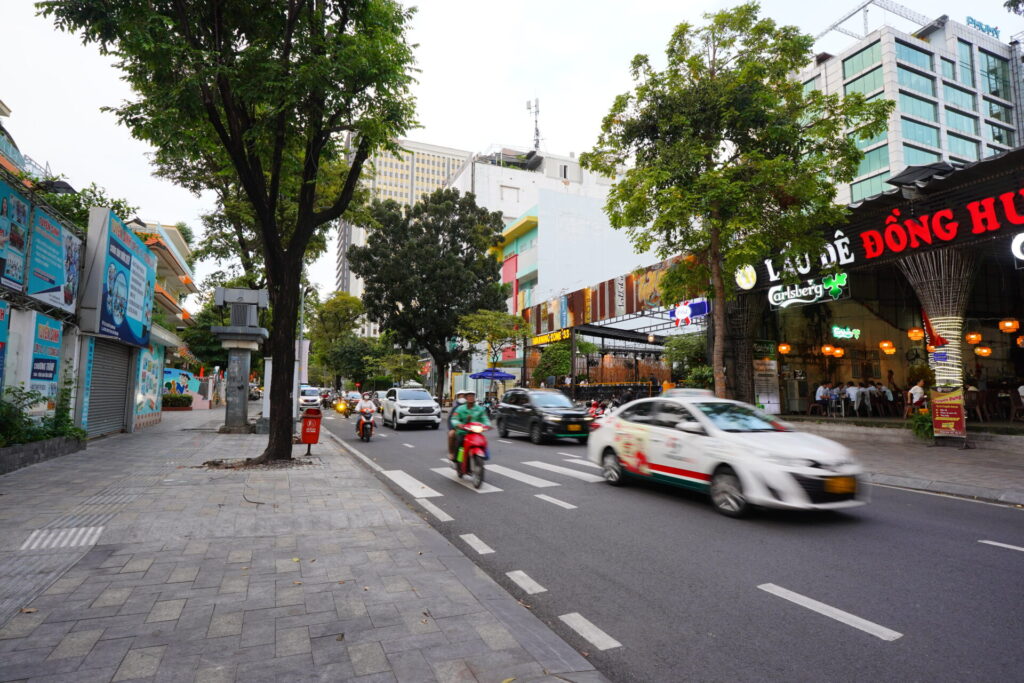 やって来たのはホーチミン市中心部、サイゴン街区のグエンディンチュウ (Nguyễn Đình Chiểu) 通り。背の高い街路樹が並ぶ街並みが特徴で、ローカルな飲食店とモダンなビル群が共存する、ホーチミン市らしい光景。