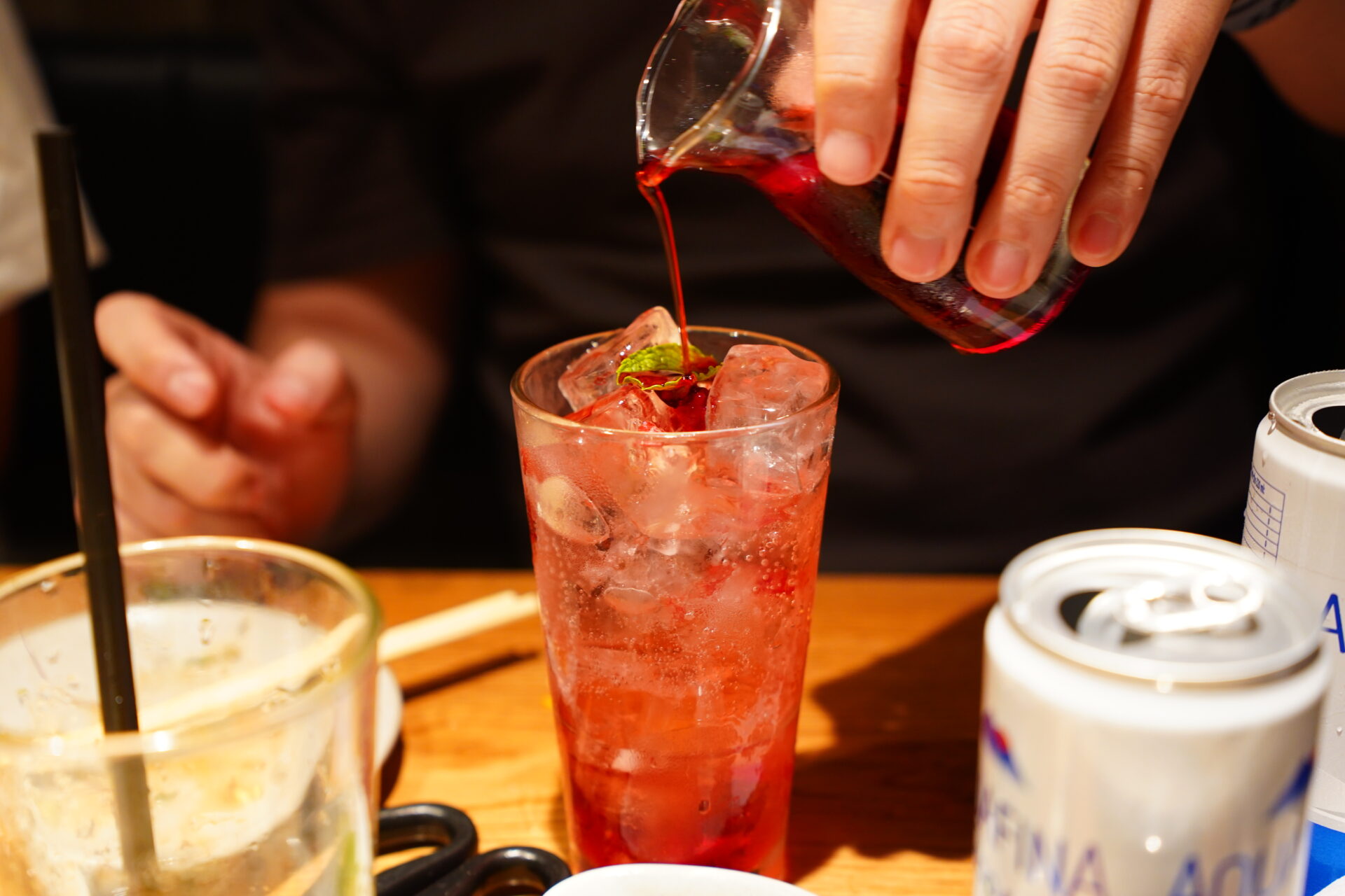 ドリンクも、シロップを注いで作る映え映えなノンアルモヒートなど、目でも楽しめる仕掛けがあります。あと、同行者曰く「コークハイボールが濃くてうまい」とのこと。
