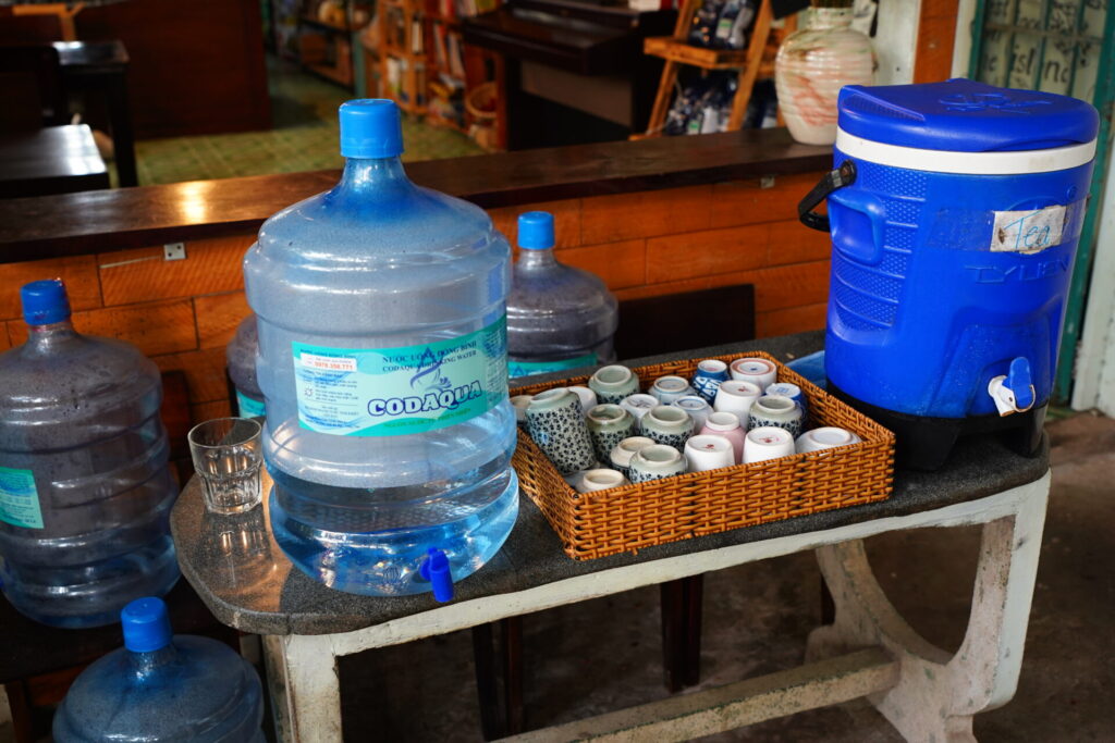 セルフサービスのお水コーナー。気兼ねなく滞在できる配慮がなされています。