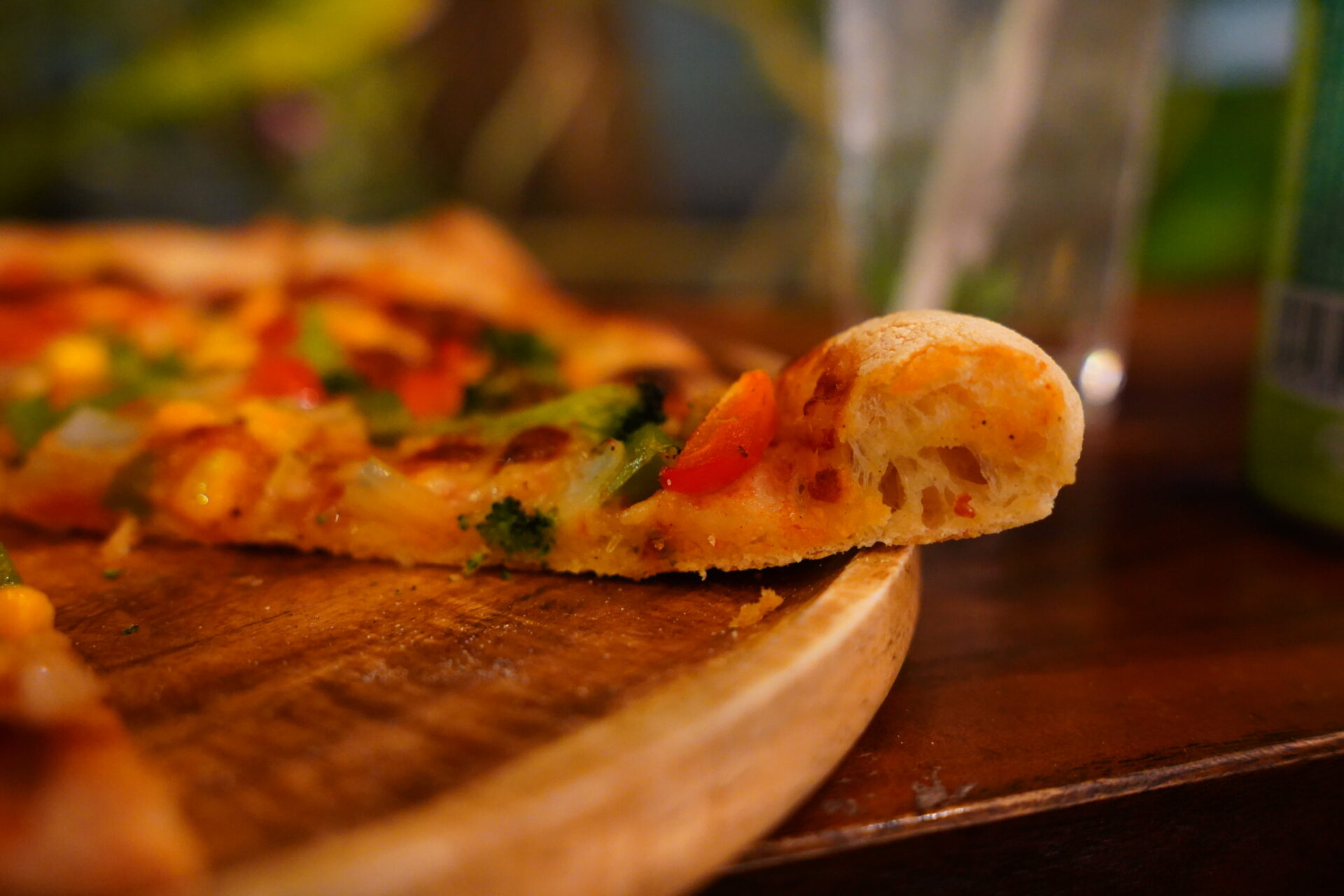 大晦日の夜。自家製だという全粒粉生地を使ったベジタリアンピザ「Roasted veggies150,000ドンをいただきました。年越しピザですね(なんにも掛かっていない)。