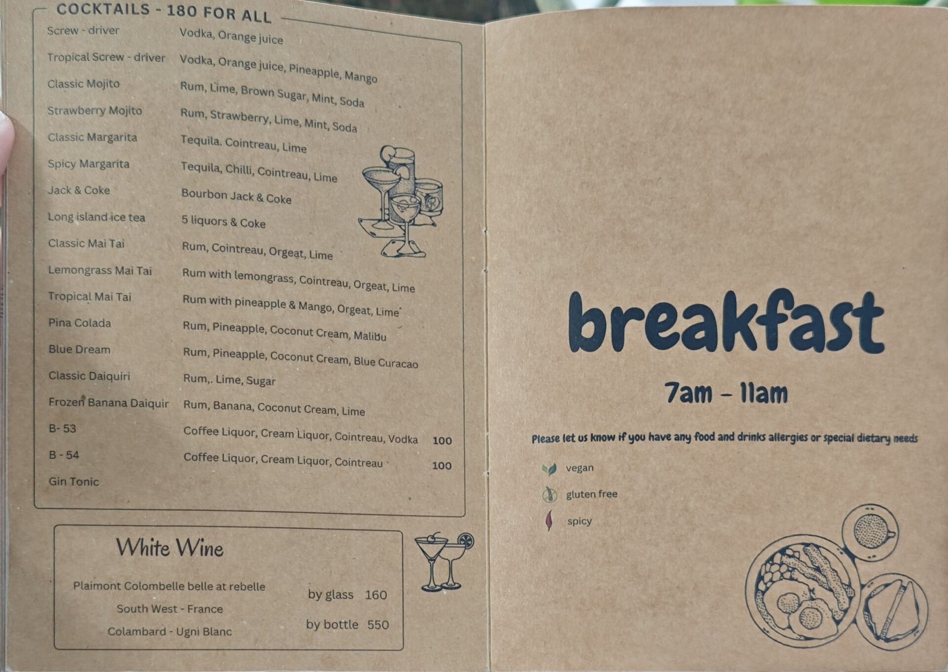 ということでメニューはこちら。朝7時から夜10時まで対応しており、ベジタリアンやグルテンフリーの要望にも細かく応えています。