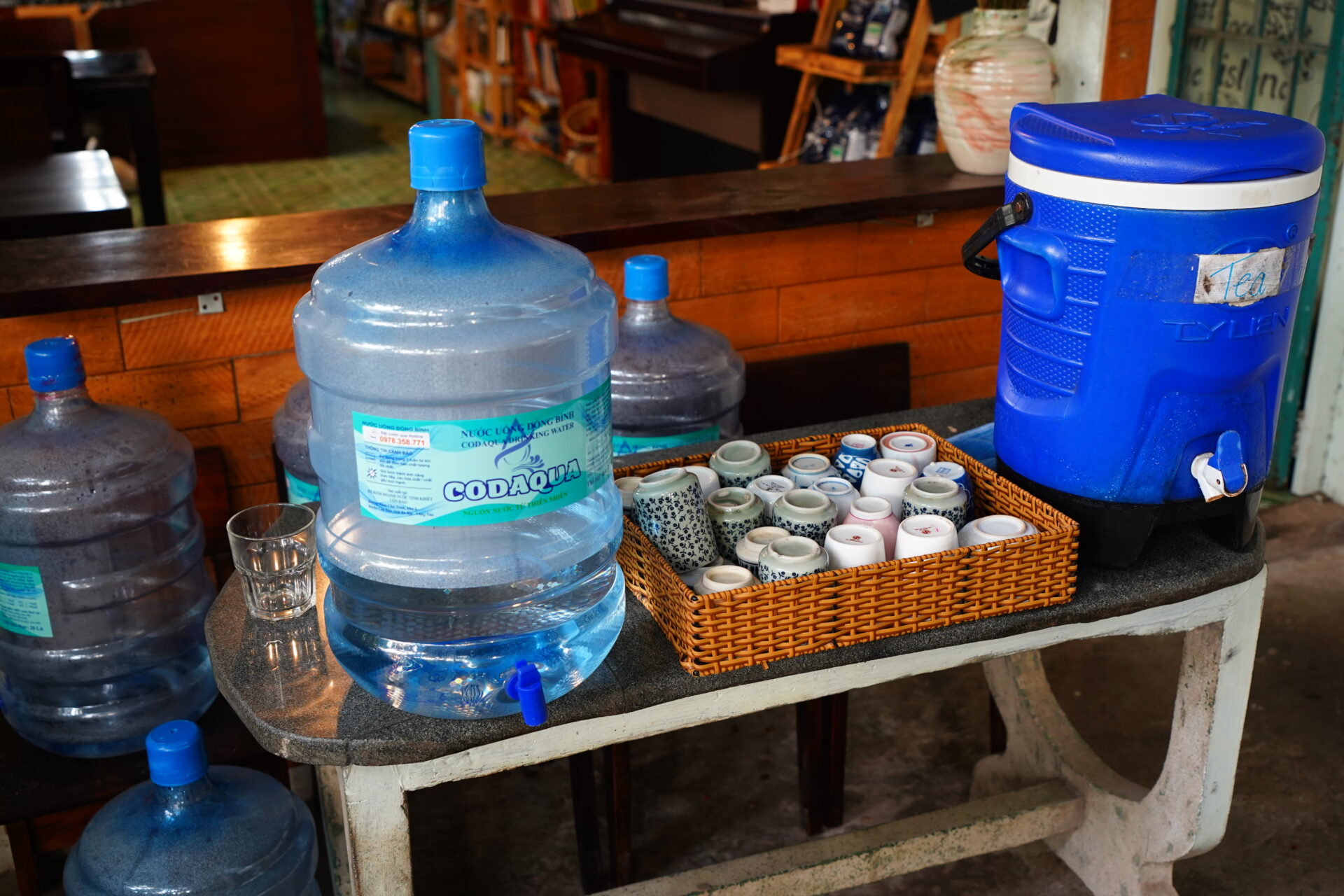 セルフサービスのお水コーナー。気兼ねなく滞在できる配慮がなされています。