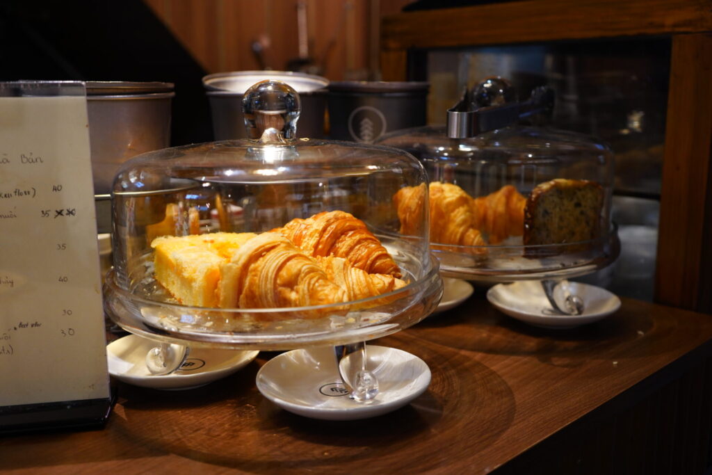 価格は、この立地にしては良心的。レジ横のショーケースにはクロワッサンやバナナケーキも並んでおり、小腹が空いた時にも良さげ。