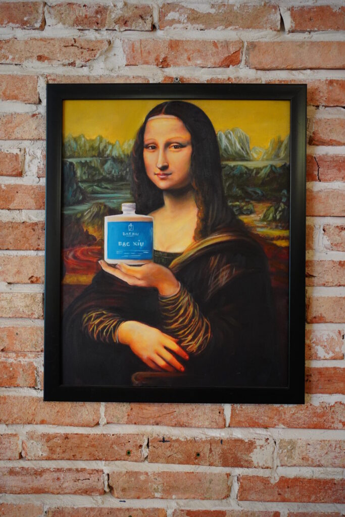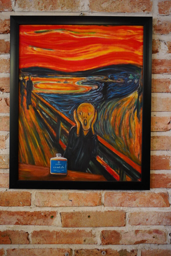 また、名画をパロディ化したアートが飾られています。モナ・リザに…ムンクさん(©水曜どうでしょう)!?日常に鬱屈する人妻だった彼女も、今では北欧からベトナムに移住して第二の人生を送っているようです(違います)。