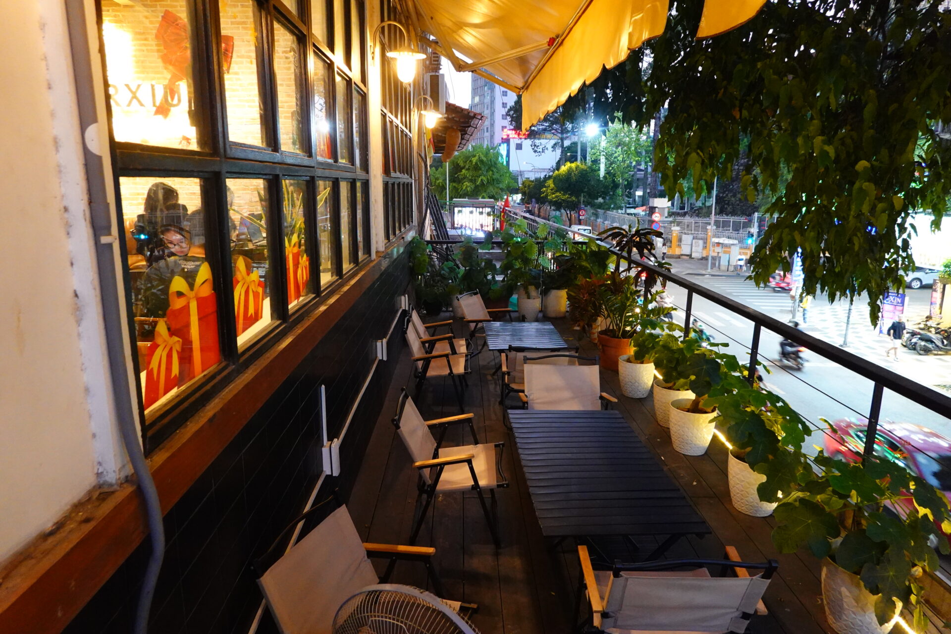 通りに面したバルコニーには、キャンプスタイルの椅子が置かれています。グエンチャイ通りの様子を眺めることができるため、ベトナムらしい活気を感じたい方には適した席。