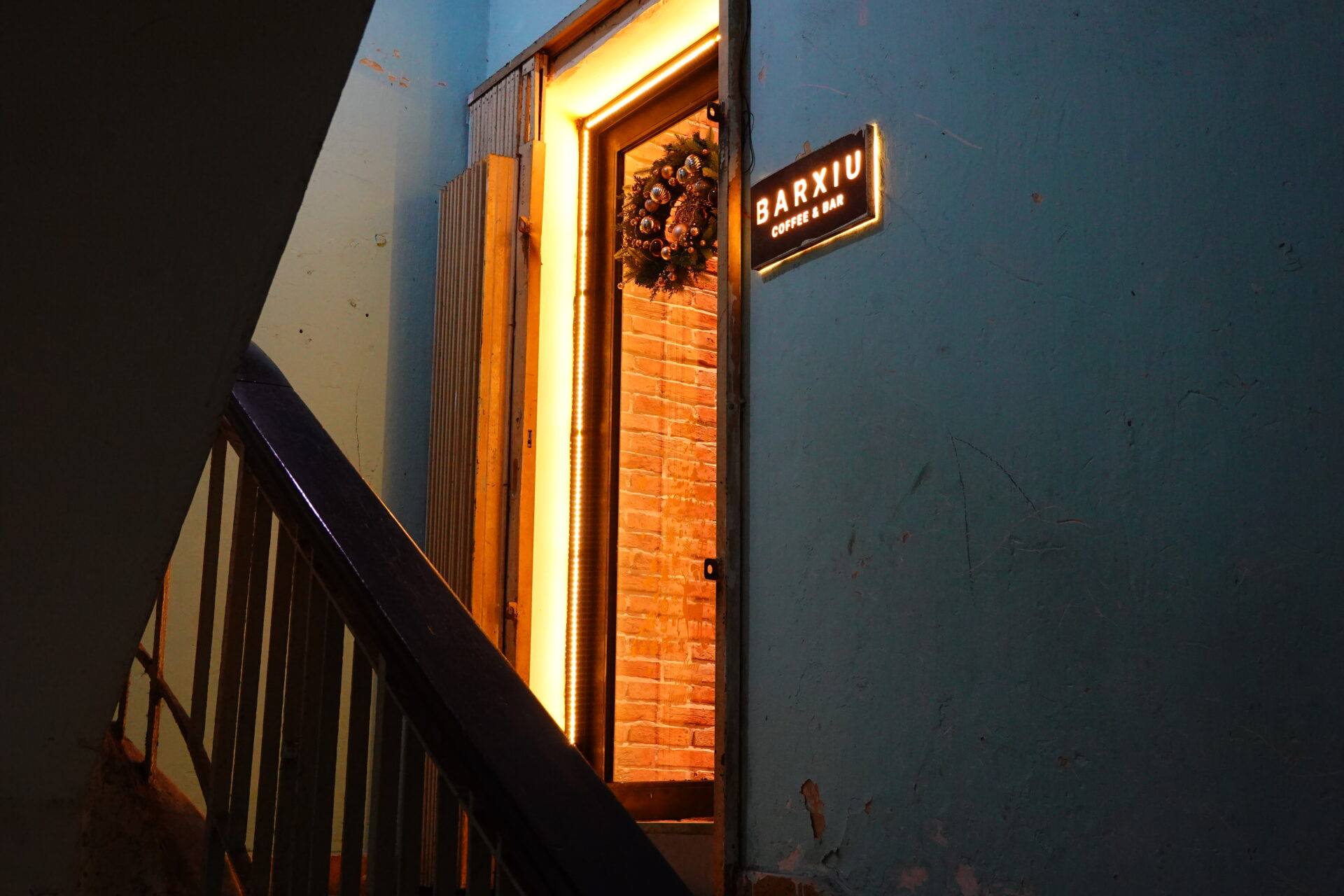 ​ふと2階を見上げると、「BARXIU COFFEE」のネオンサイン。こんな渋い建物の中にモダンなカフェが…というコントラストこそが、このお店の最初の魅力。