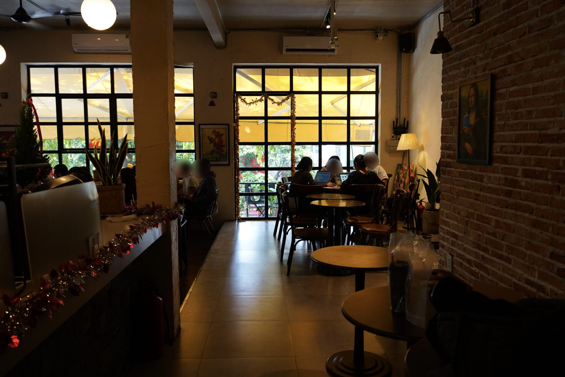 照明が少なめの古い階段を上がっていく必要があり、初めて訪れる際は少し戸惑うかもしれませんが、ホーチミンの隠れ家カフェではよく見られる構造。ずかずかと上がっていきましょう。