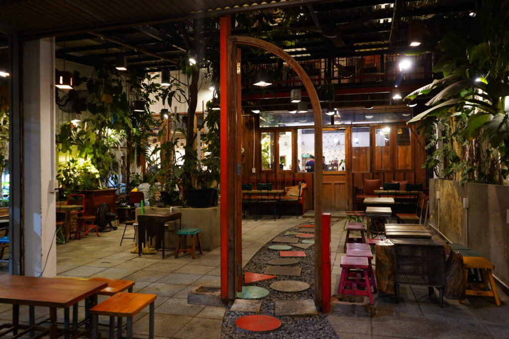 今回は、最近注目のグルメエリアの路地に素敵なカフェを見つけたのでご紹介。無骨なインダストリアルデザインと、温かみのあるレトロな家具、そして溢れんばかりの植物が共存するその空間は、まさに都会のオアシス。