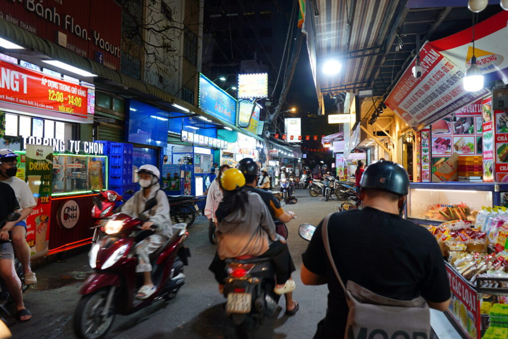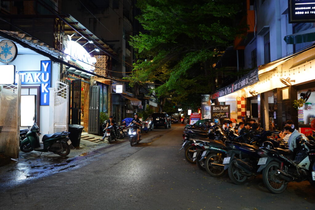 メイン通りの喧騒から逃れるように、こちらの路地に足を踏み入れます。この辺りは格安のテイクアウト専門ドリンク店(1杯7,000ドン〜とか)が多く、受け取り待ちのバイクで大変混雑。