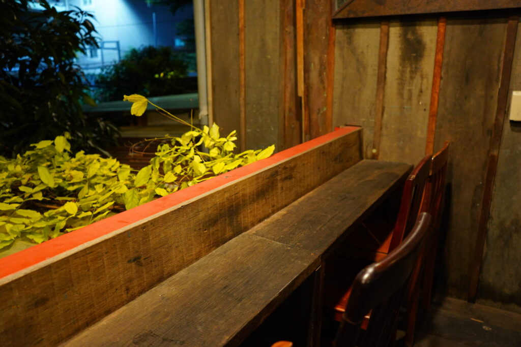 窓の外に設けられた小さなバルコニー席。狭いですが、ホーチミン市の夜の空気感を肌で感じられるチルスポットです。