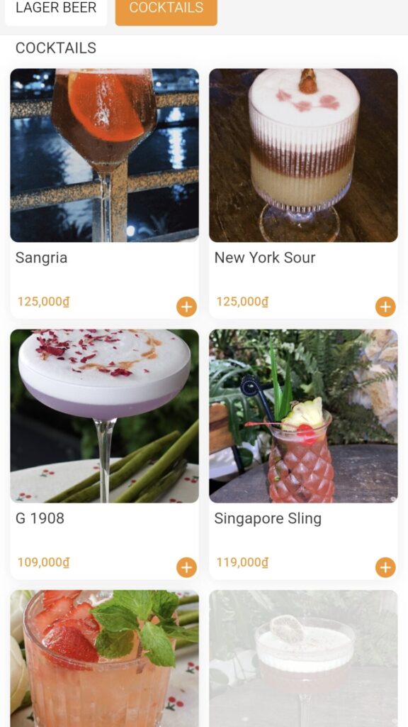 「Chill Chill Cocktails」と名付けられたカクテルシリーズは、ジンやウォッカをベースにしたフルーティーなものが中心で、種類も豊富。価格も99,000ドンからとお手頃。
