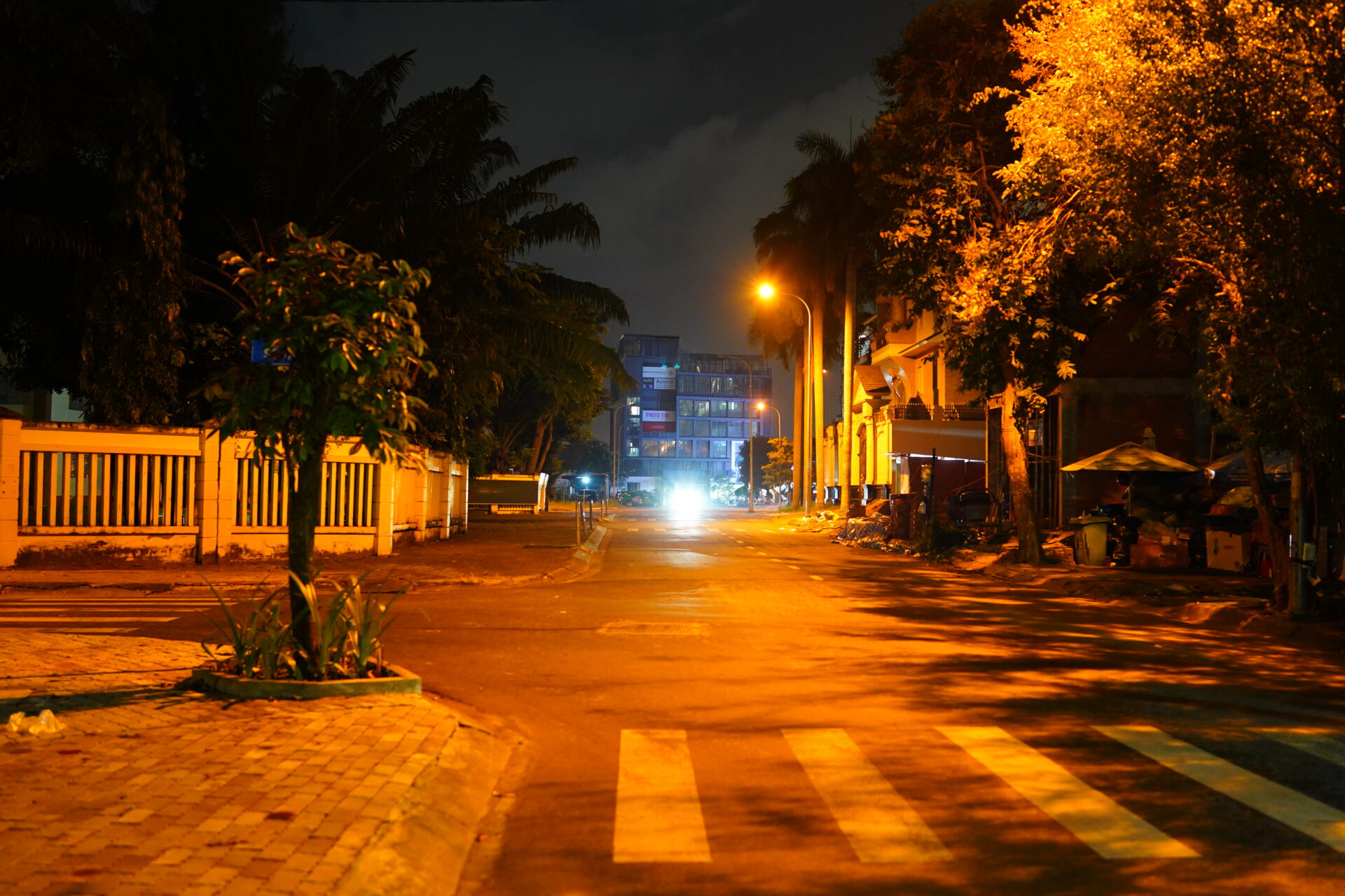 住所を頼りにGrabで向かうと、到着したのはサイゴン川沿いの少し奥まった通り(Đường Số 38)。あたりは街灯も少なく、夜になるとひっそり。写真では明るく撮れていますが(f/1.4の単焦点を持ち出しました)、実際は真っ暗です。