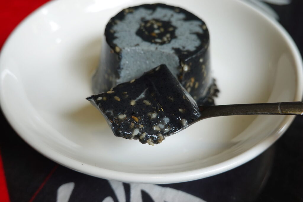表面には胡麻の粒がたっぷり。スプーンを入れるとしっとりと吸い付くような密度を感じます。