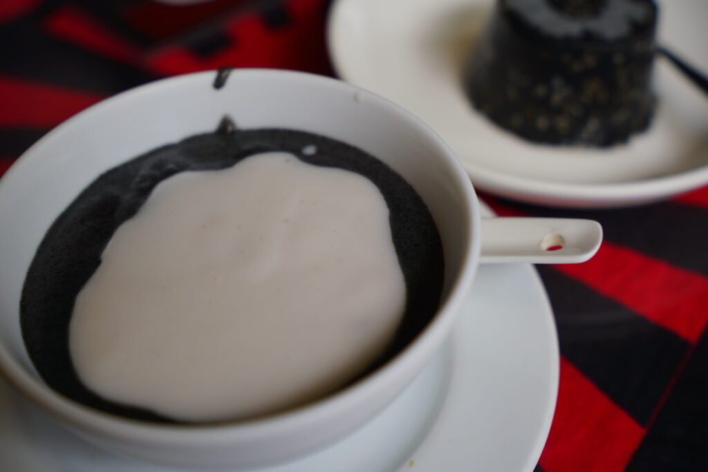 運ばれてきたチェーは漆黒の液面にココナッツミルクの白が映え、まるで一幅の抽象画?そしてオーナーからは「混ぜないで!」と日本語で言われたので、その通り従うことに。語彙力が高い…!