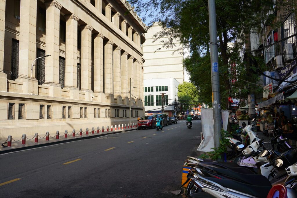 やって来ました、サイゴン街区(旧1区)・トンタットダム (Tôn Thất Đạm) 通り。証券会社や銀行の本店が立ち並ぶ、まさに「サイゴンのウォール街」。
