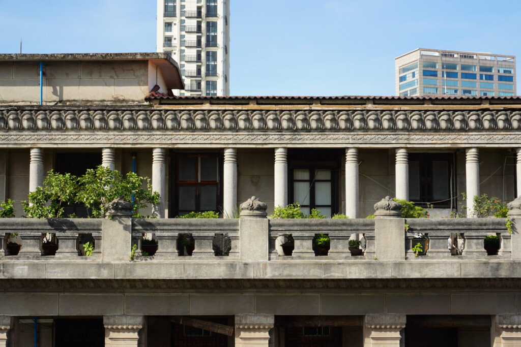 そんな華やかな銀行からくるりと背を向けると…煤けたコンクリートの壁、不規則に増築された鉄格子のバルコニー、外壁を這う無数の電線。ベトナムにおける「生活感」を煮詰めたような強烈空間が眼前に現れるのだった。