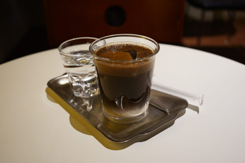 上部に注がれた濃褐色のほうじ茶。こ、こんなにほうじ茶って濃かったっけ?コーヒーみたいな見た目だ…。
