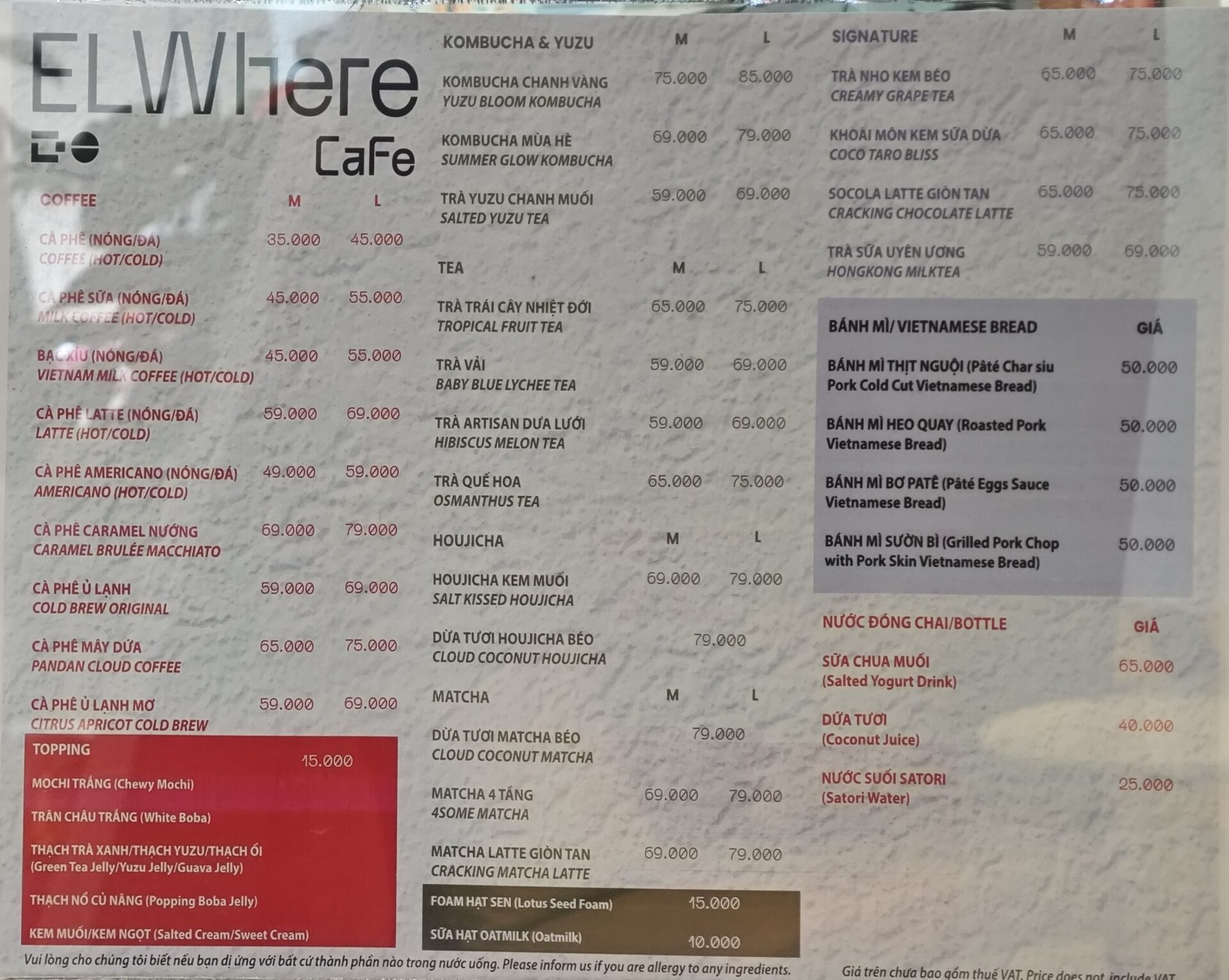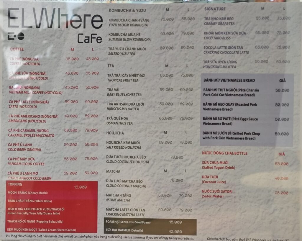 「EL Where Cafe」のメニューはこちら。
