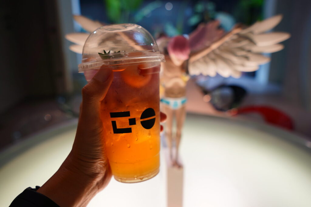 メニュー名は「ベイビーブルー」ですが、実際にはパープルからアンバーへと変化する幻想的なグラデーション。爽やかな紅茶の香りと共に、ライチの華やかな甘みが広がります。