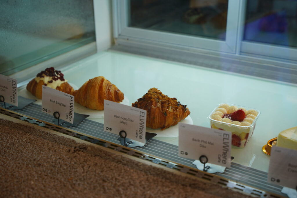フードメニューには、バインミーや、ショーケースに並ぶクロワッサン、ケーキ類も充実しています。