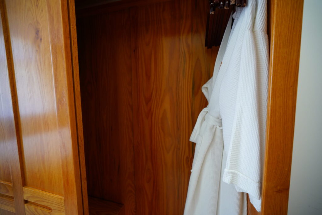 クローゼット内には、ワッフル生地のバスローブが完備。