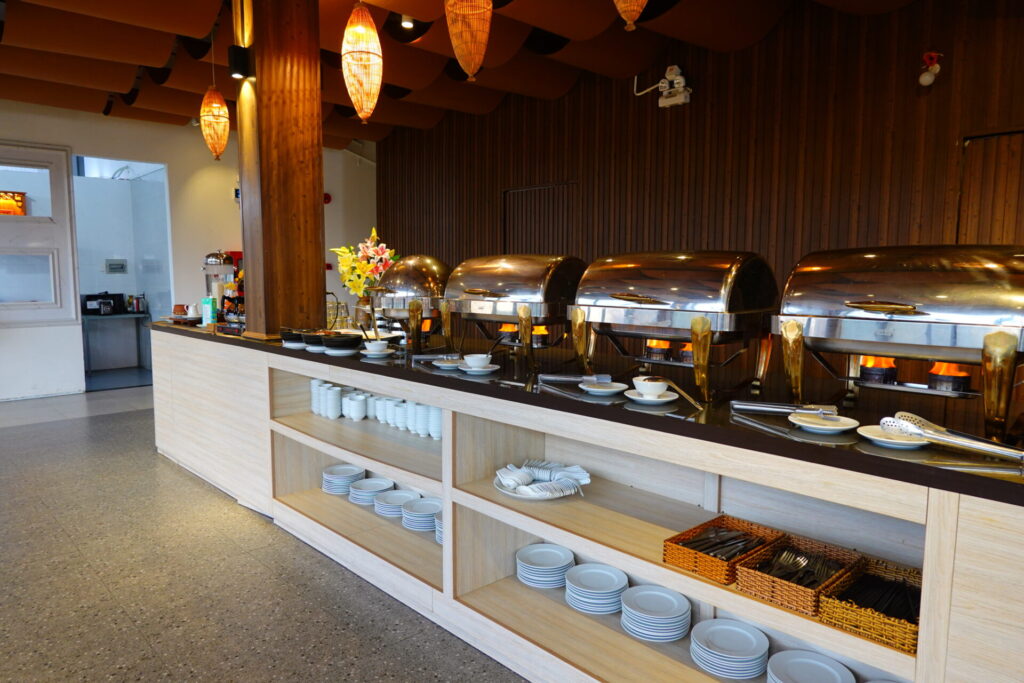 朝食会場は最上階。壁一面の窓からは海が一望でき、水平線から昇る朝日を眺めながら食事を楽しめるなど、ロケーションに恵まれています。