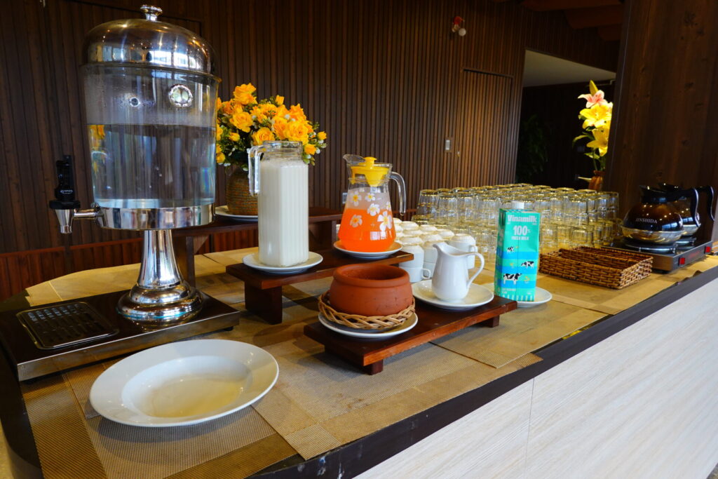 もちろん、フルーツやパンなどの軽食目的であれば利用しても良いでしょう。写真中央のドリンク、オレンジジュースかと思ったらミリンダ(炭酸飲料)でびっくりした。