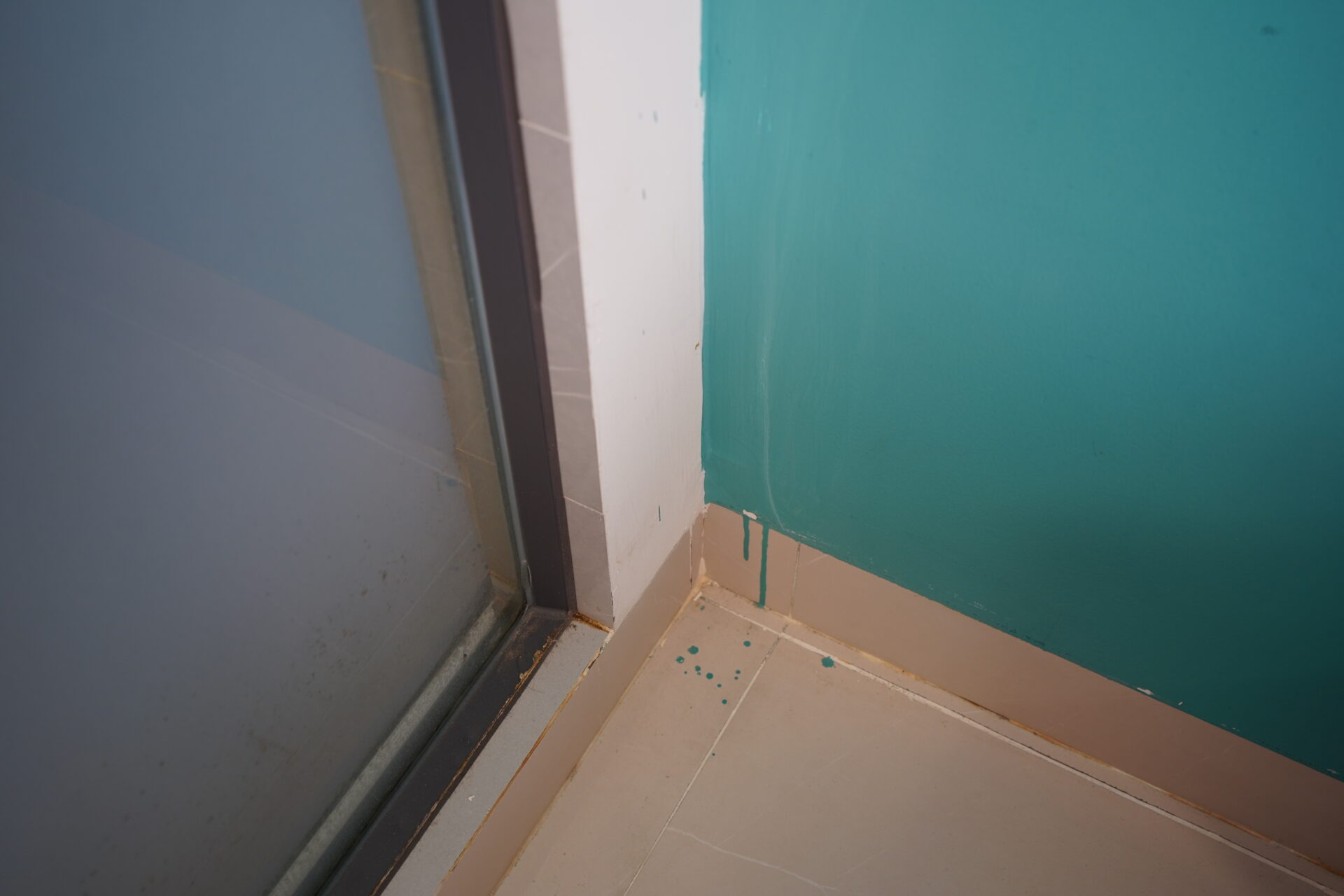 ただ、排水溝が入り口付近にあるのと、床に傾斜が無いため水浸しになります。部屋とシャワールームの間は段差があるので、流石に外まで水が出ていくことは無いけども。