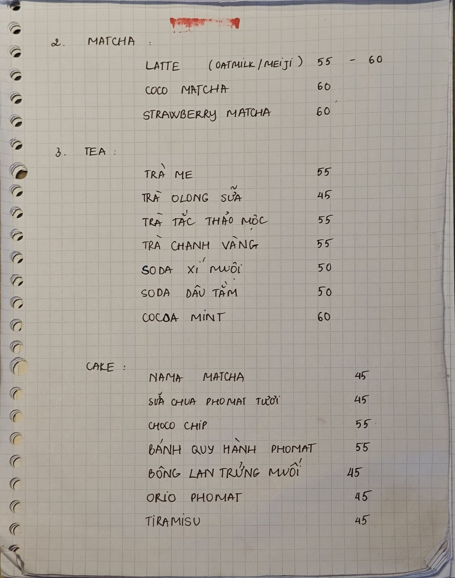 「Matcha latte」60,000ドンと、「Sữa chua phô mai tươi」45,000ドン。