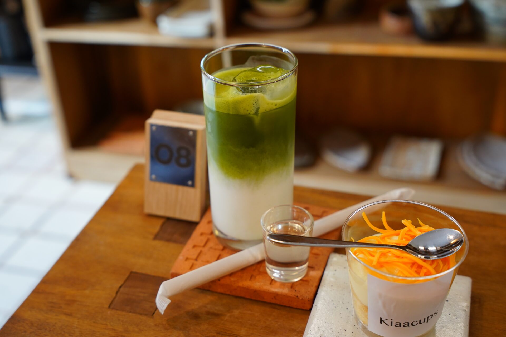 抹茶ラテはオーツミルクか牛乳(明治)を選択可能。今回は牛乳にしました。明治牛乳(タイ製のやつです)の使用を売りにしているカフェ、多いけどそんなに良いものなのだろうか。乳脂肪分が多くてリッチな味わいなのかな。