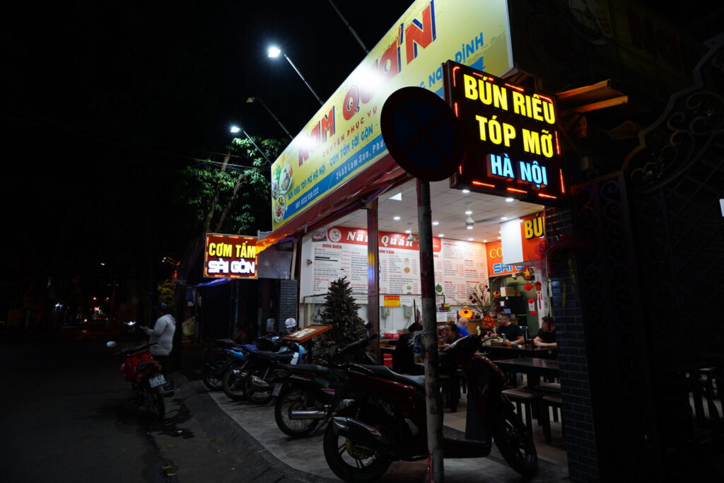 インターナショナルフードは無いですが、ローカル食堂なら幾つかあります。こちらはカニ出汁が効いた「Bún Riêu Tóp Mỡ」や、定番のコムタムなど、ベトナム南北の味を一度に味わえるお店。