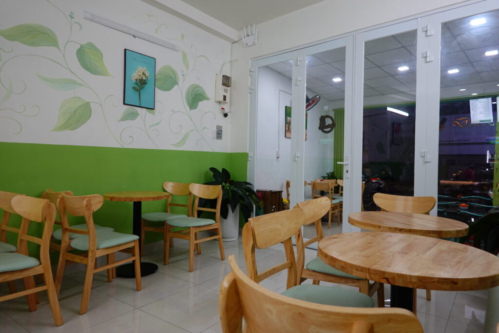お次は旧ビンタイン区・Nguyễn Văn Thương店。この周辺は、大学や住宅街が近いエリアです。こちらの店舗も、他のローカルビジネス(精肉店、ビューティーサロン)に挟まれる形で通りに面しています。
