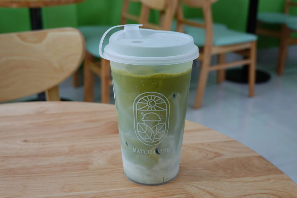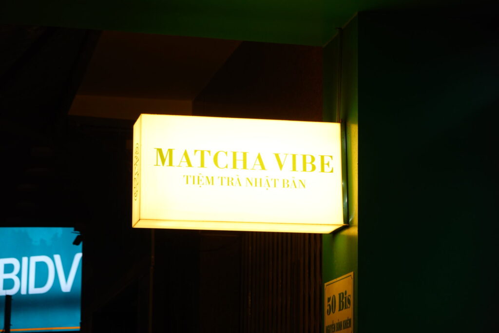 それが、2024年に設立された新興ブランド「Matcha Vibe」。ホーチミン市のみならず、ベトナム各地の都市部で店舗を増やしており、「100%日本から輸入した高品質な抹茶」 の使用を謳いながらも、看板商品の抹茶ラテを35,000ドンからという低価格で販売します。
