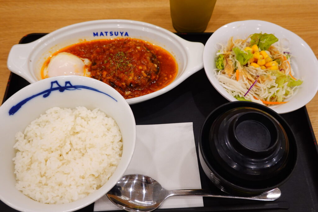…本当は、日本の松屋に合わせて販売開始された「コムタム風ポークライス」を取り上げようとしていたのですが、いつの間にか販売終了していました。これは予定通りなのか、それとも思ったより人気が出なかったのか…?→まだ終売していませんでした。券売機の新商品枠からなくなっていたので勘違い…。