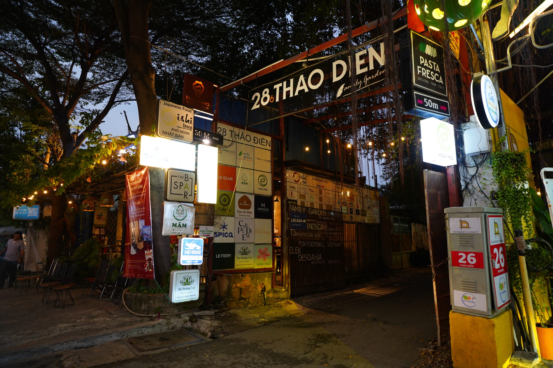 やって来ました、アンカイン街区(旧トゥードゥック市)タオディエン (Thảo Điền) 通り28番地。こちらの路地には「Oishi Town」をはじめとする複合施設があります。