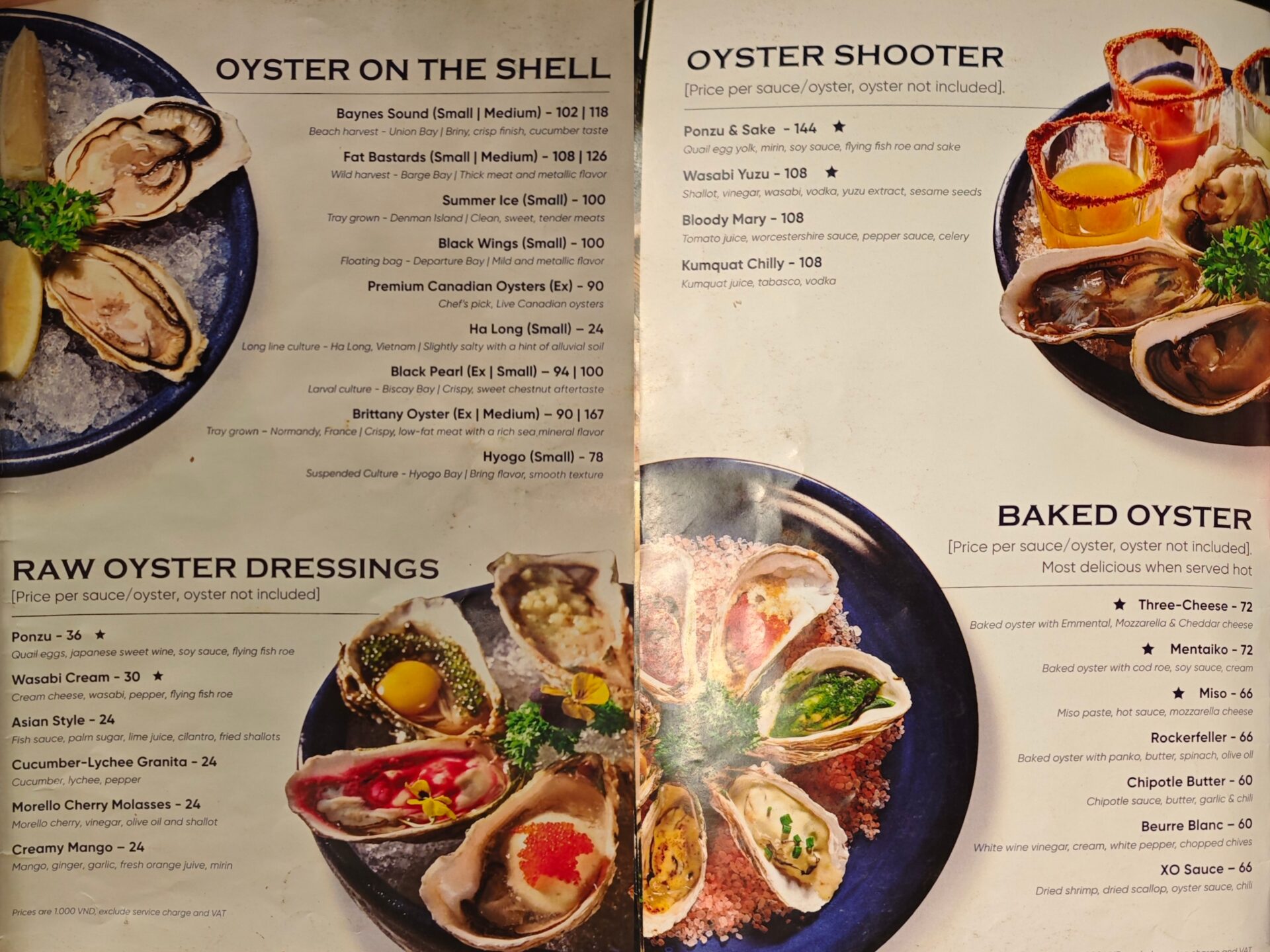 いずれもベトナム産の2倍の価格…ということもあり、率直に言ってむしろローカル牡蠣のコスパが引き立つ結果に。…いや、美味しい、美味しいのですが、ローカル産と比較すると身が弛く感じたり、やけに塩辛かったり。
