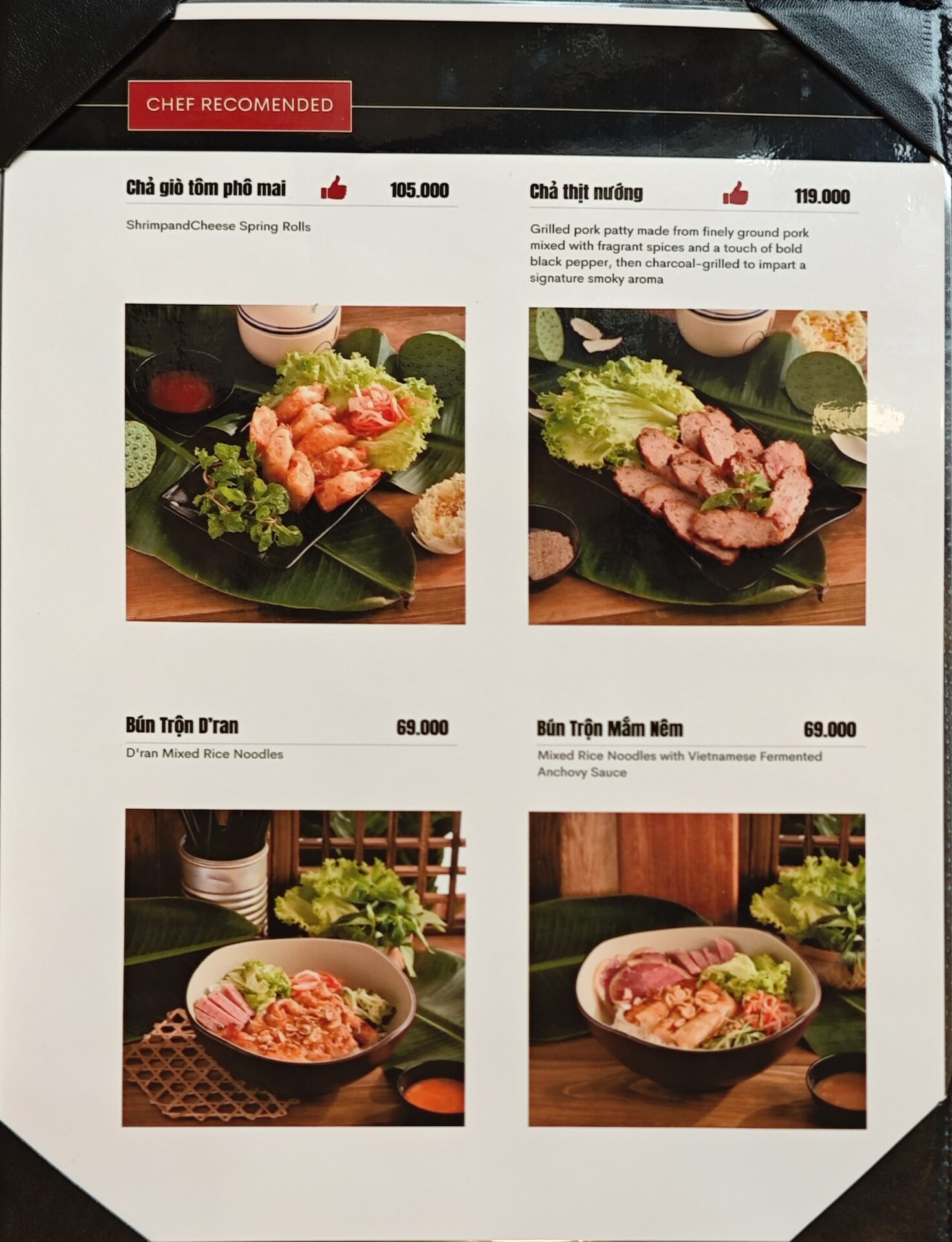 「Nem nướng D’ran」のメニューは写真が添えられており、ベトナム料理に詳しくなくとも安心して注文できます。