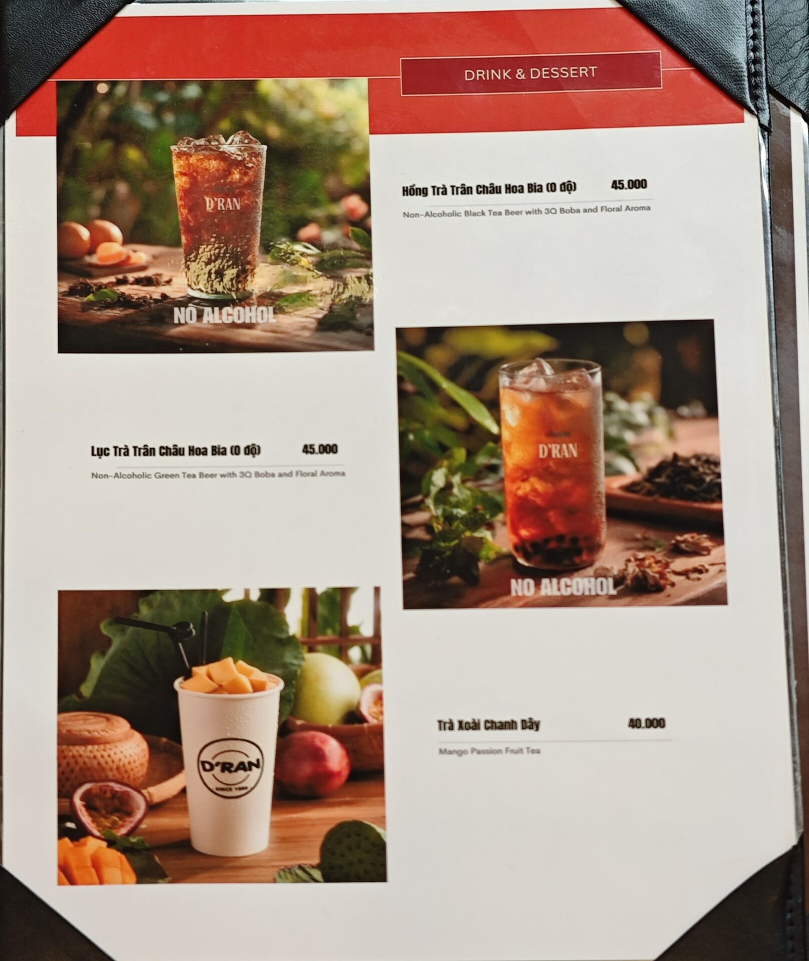 ライチティー、ピンクグアバティー、ピーチティーなどの各種フルーツティーに加え、「ノンアルコールブラックビアティー・タピオカ入り」といったユニークな創作ドリンクも。個人的には、甘くないドリンクがもう少しあると嬉しいかも。