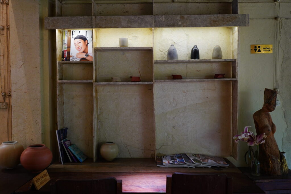 店内の至る所には、前述の「Gốm Sài Gòn」との繋がりを感じさせる陶器や雑誌なんかがさりげなくディスプレイ。空間全体にギャラリーのような洗練された雰囲気を与えています。