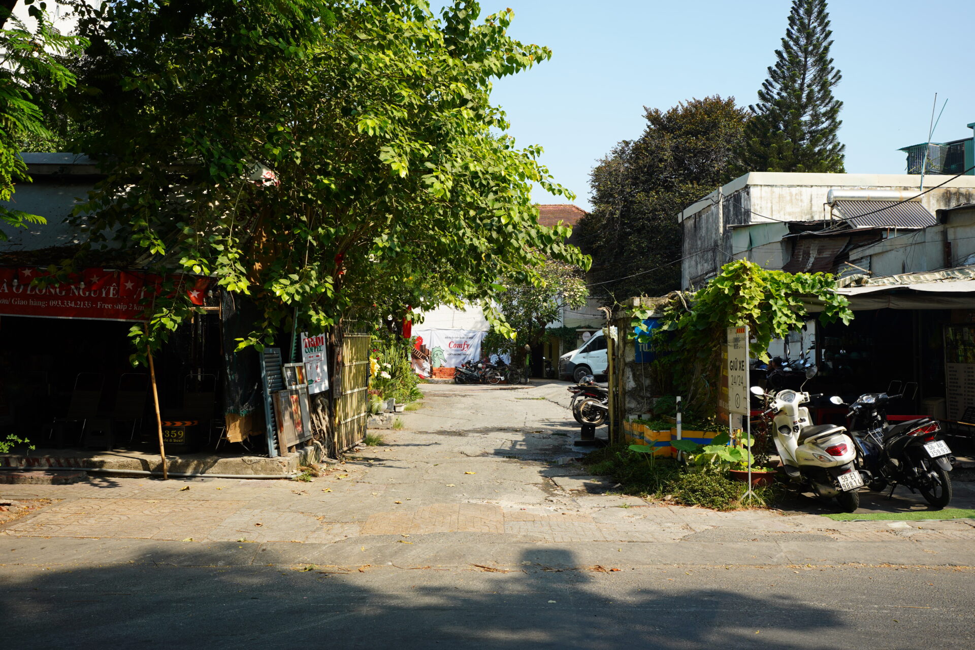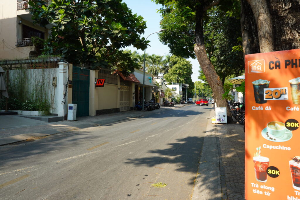 やって来ました、ホーチミン市旧3区(現スアンホア街区)・トゥスーン (Tú Xương) 通り。この界隈はフランス植民地時代からの邸宅が多く残るらしく、街路樹が大きく枝を広げた通りは都心の喧騒を忘れさせてくれる穏やかさがありますわね。