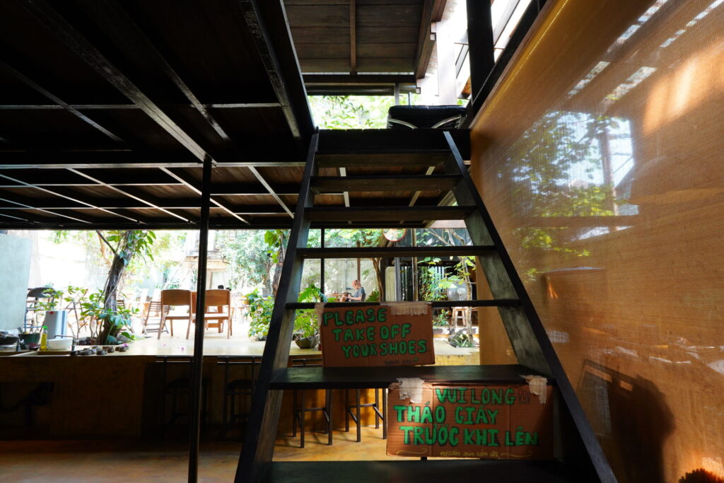 ちなみに、靴を脱いであがるスタイルの席も。ベトナムのカフェではたまに見かけますが、日本人的には座敷を思わせるリラックスした気分にさせてくれます。
