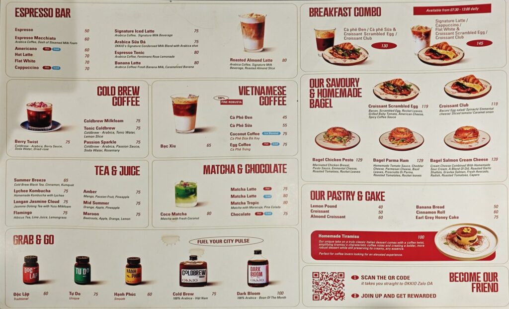 「OKKIO Caffe – Lê Lợi」のメニュー