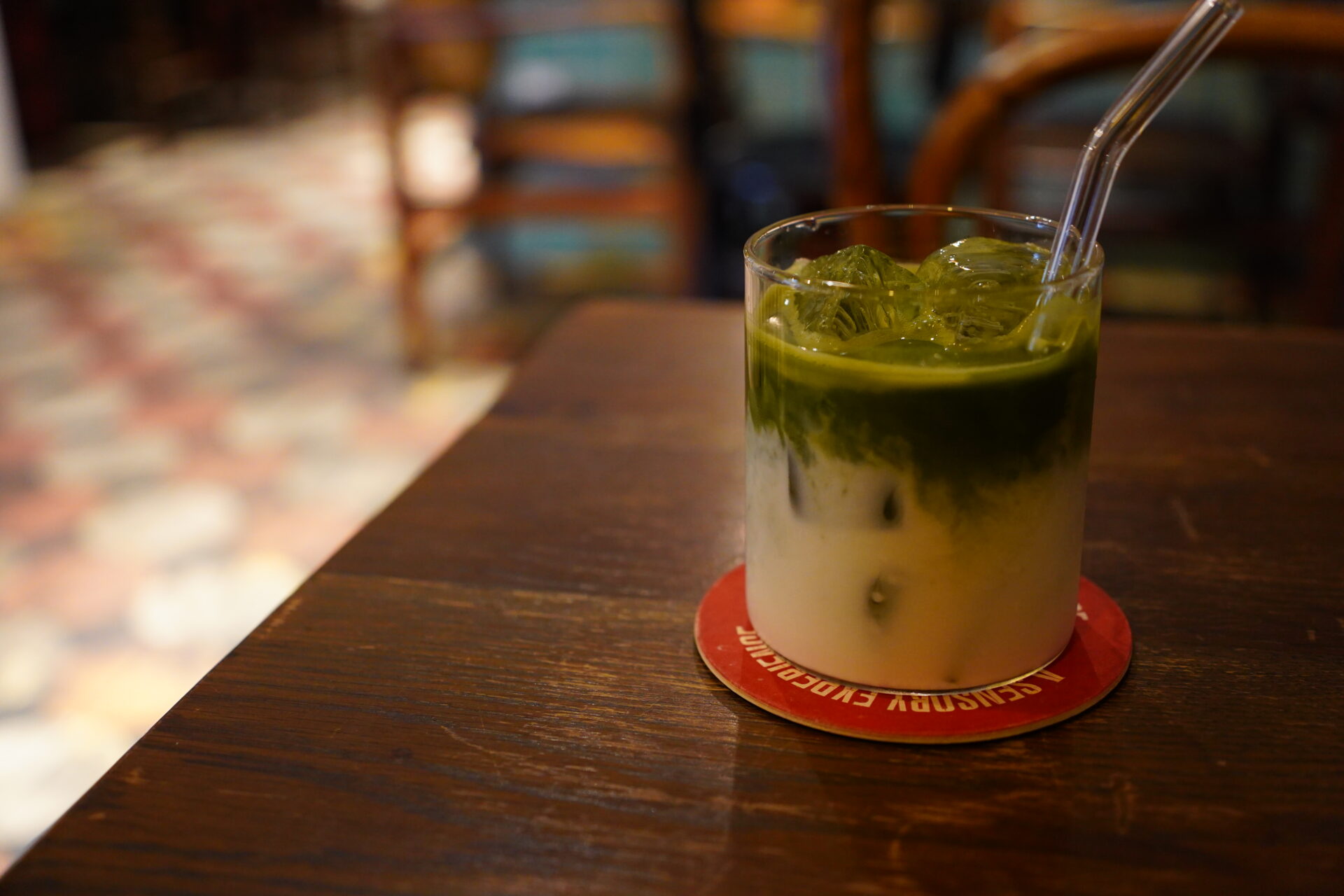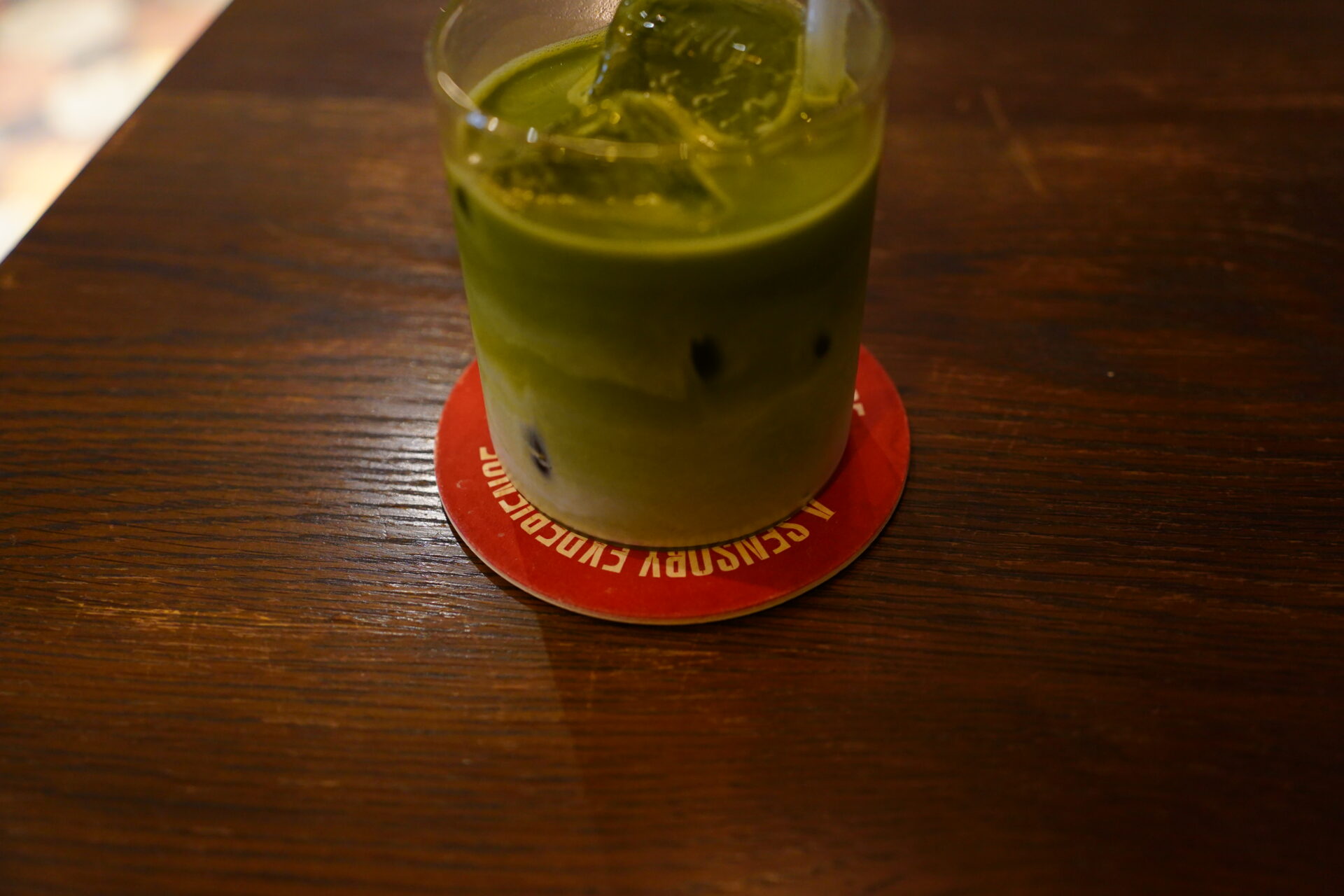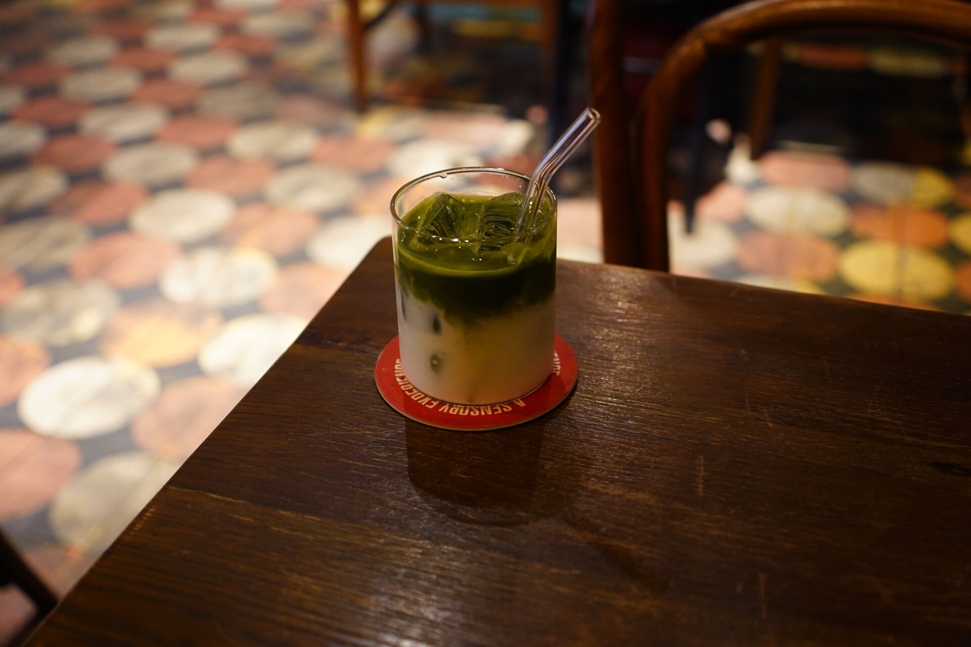 抹茶本来の旨味を重視した味わいは、まさにオトナのラテ。赤いコースターに記された「A SENSORY EXPERIENCE」という言葉の意味を、自らの舌で実感したのだった。