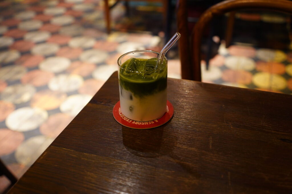 以前にコーヒーは試したので、今回は「Matcha Latte」をオーダー。価格は80,000ドンと少々値が張りますが、その分抹茶のクオリティには期待できます。追加料金を支払うことで、さらにプレミアムな抹茶に切り替えることも可能。