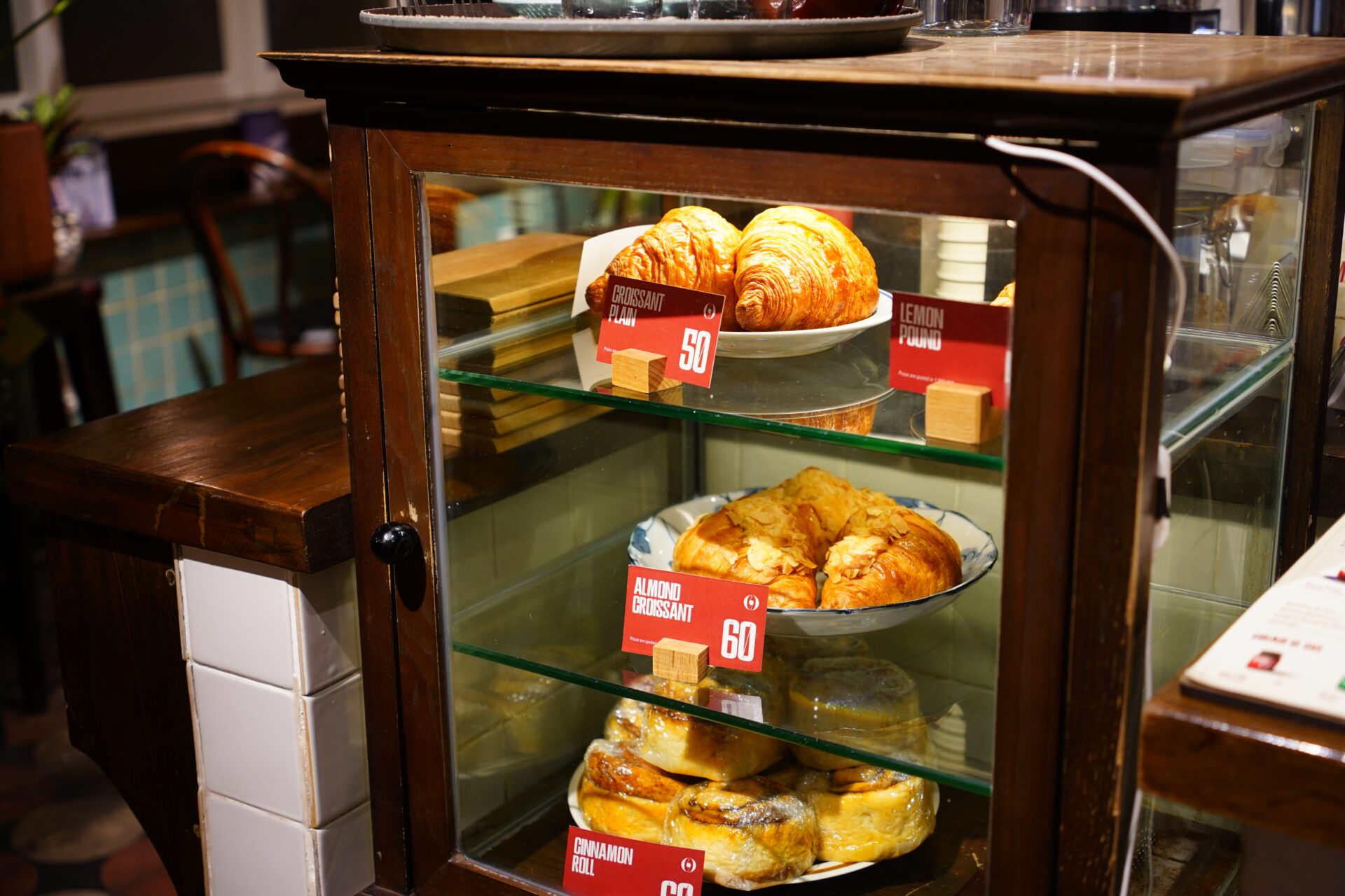 ショーケースにはクロワッサンや、コーヒーと合いそうなパウンドケーキが並んでいます。