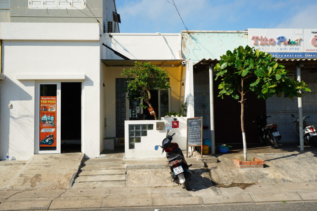 こちらもまたフークイ島の北部、Lê Hồng Phong通り。海辺の過酷な環境に耐えるためか、厚塗りの漆喰や石材が用いられた低層の建物が並び、普段見られない光景に興味津々。