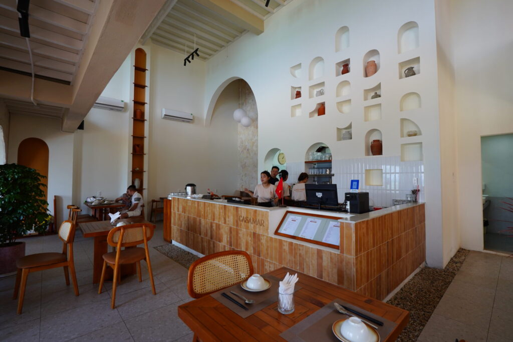 ということで2軒目に訪れたのは、「Casa Mar Phú Quý」。ブティックホテル併設の、カフェ&レストランです。オレンジと白を基調としたモダンな地中海スタイルが特徴的。